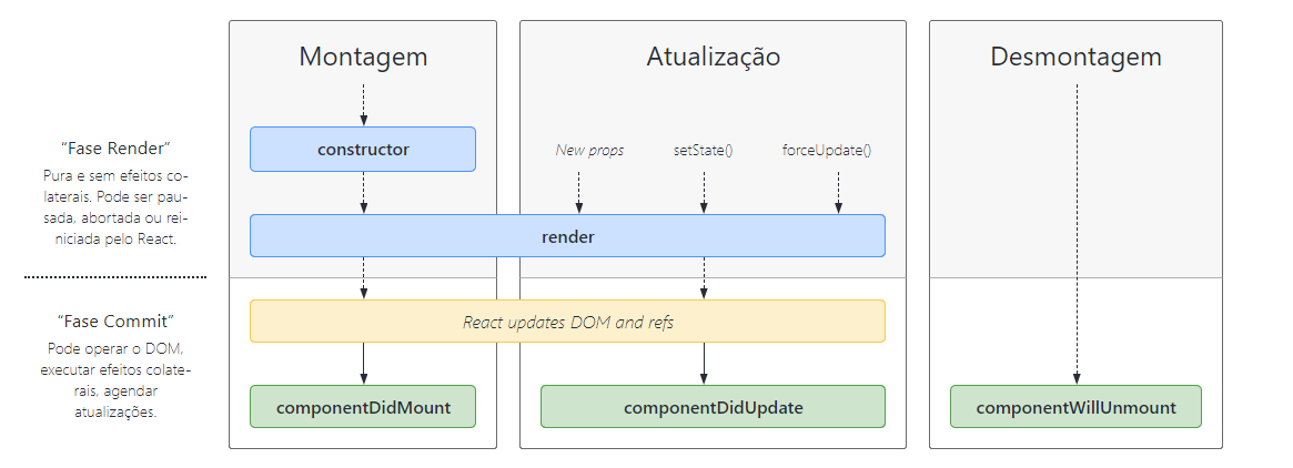- Construtor de componente de classe, método render e método shouldComponentUpdate (veremos o funcionamento deles na próxima lição),